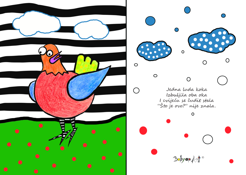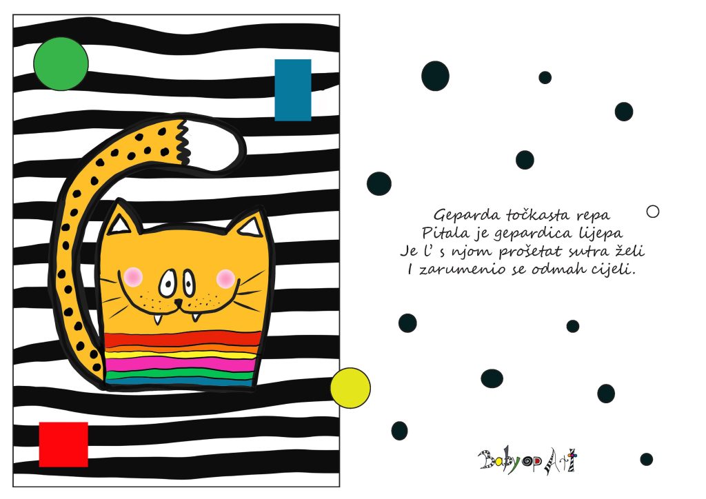Osim vizualnog podražaja Baby op art vam može pomoći da nađete inspiraciju za priču. Promatrajte zajedno i pričajte što vidite. Vizualni i slušni podražaj povoljno će utjecati i na razvoj bebinog govora i kreirati tople trenutke u kojima se razvija međusobna emocionalna povezanost između vas i vaše bebe.